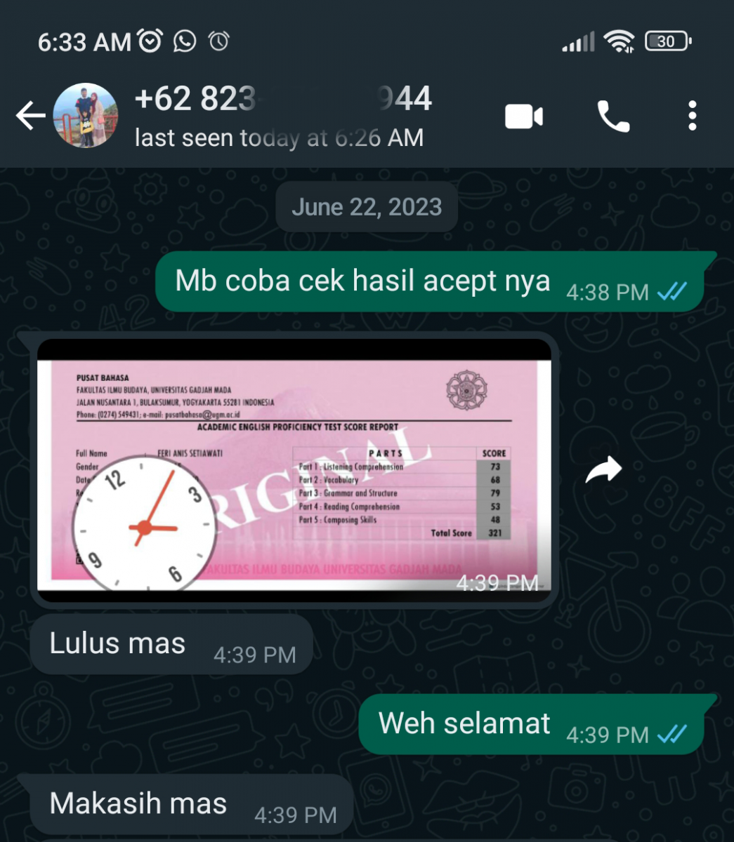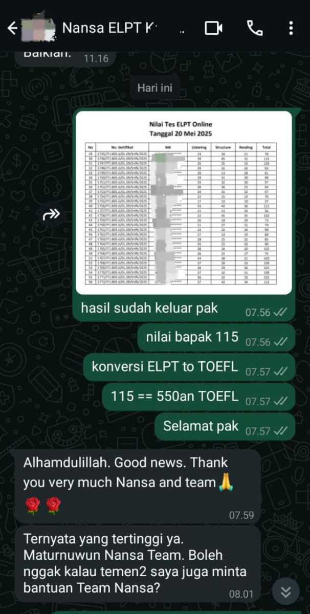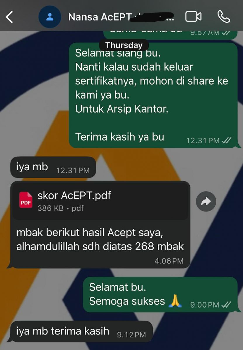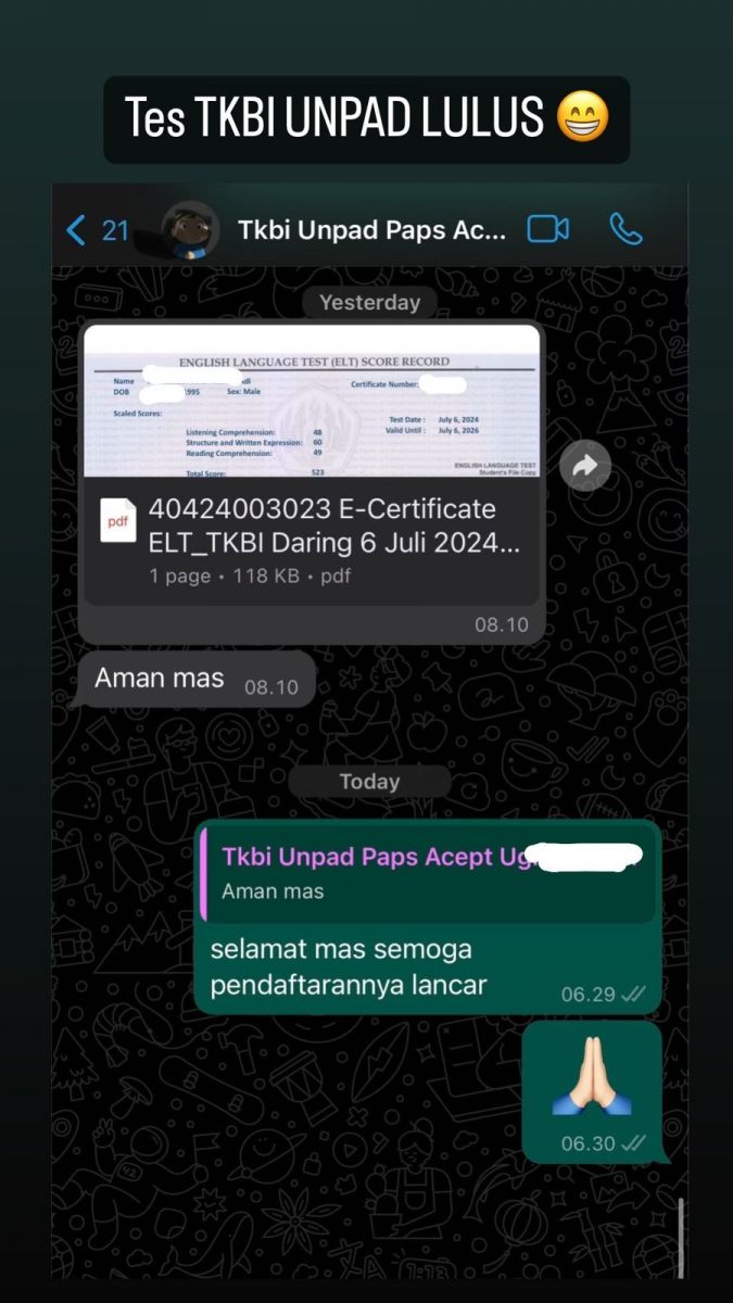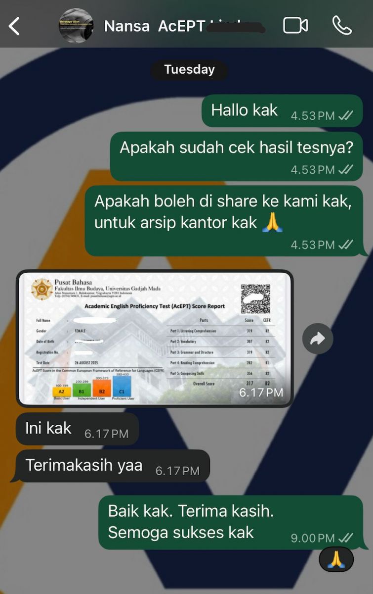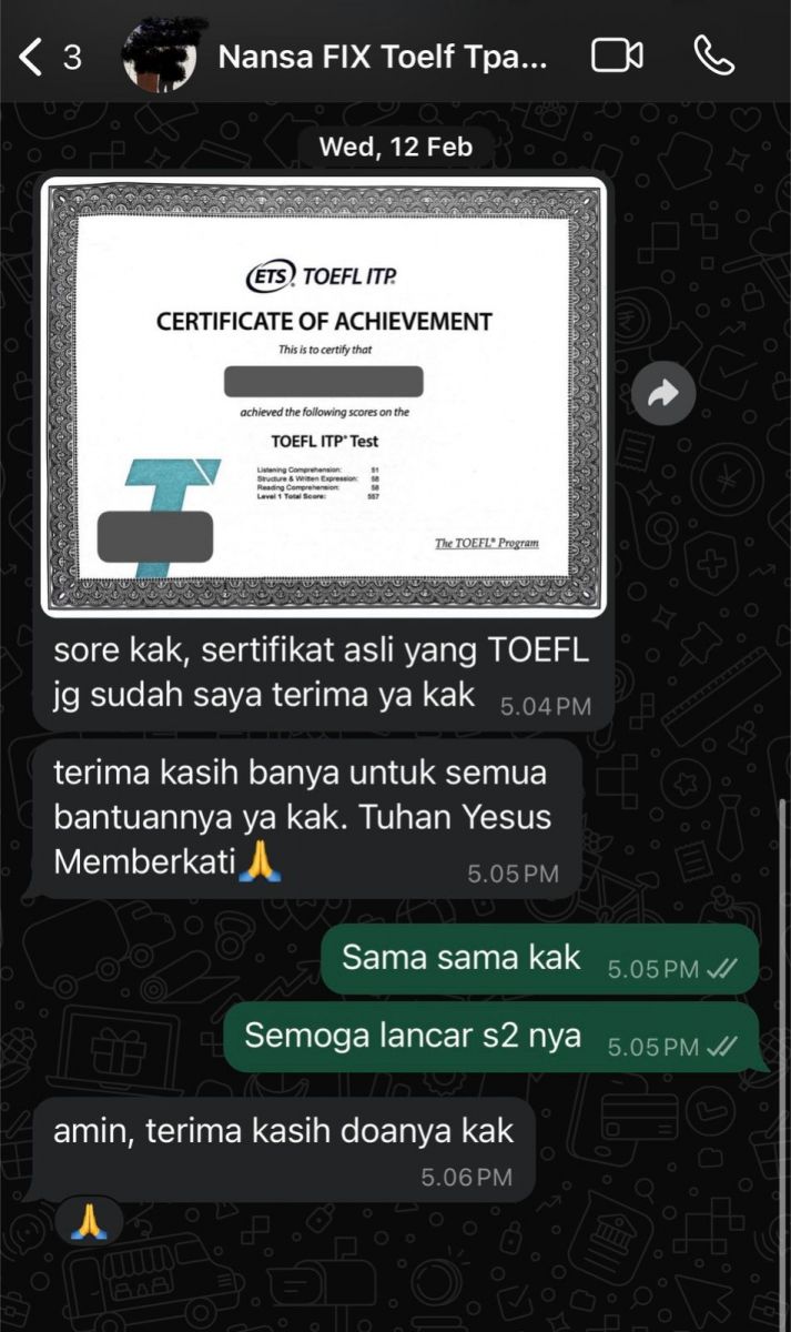 Testimoni LULUS Tes Acept UGM, TOEFL, TOEP, ELPT, TKBI SERDOS